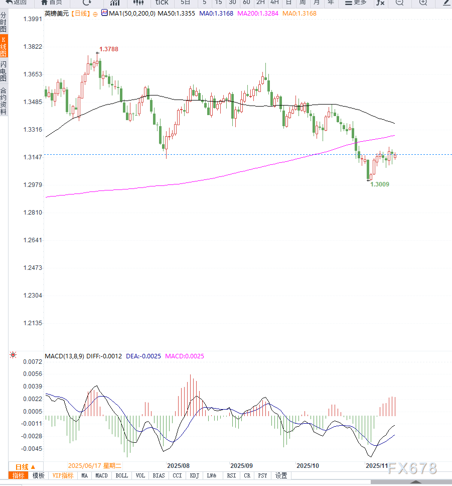 从整体市场结构来看,GBP/USD当前仍缺乏多头推动力。英国经济疲软、财政政策不确定性与降息预期共同压制英镑;而美元因数据预期与政策谨慎态度持续保持强势。短线虽有反弹,但尚不足以改变震荡偏空的结构。