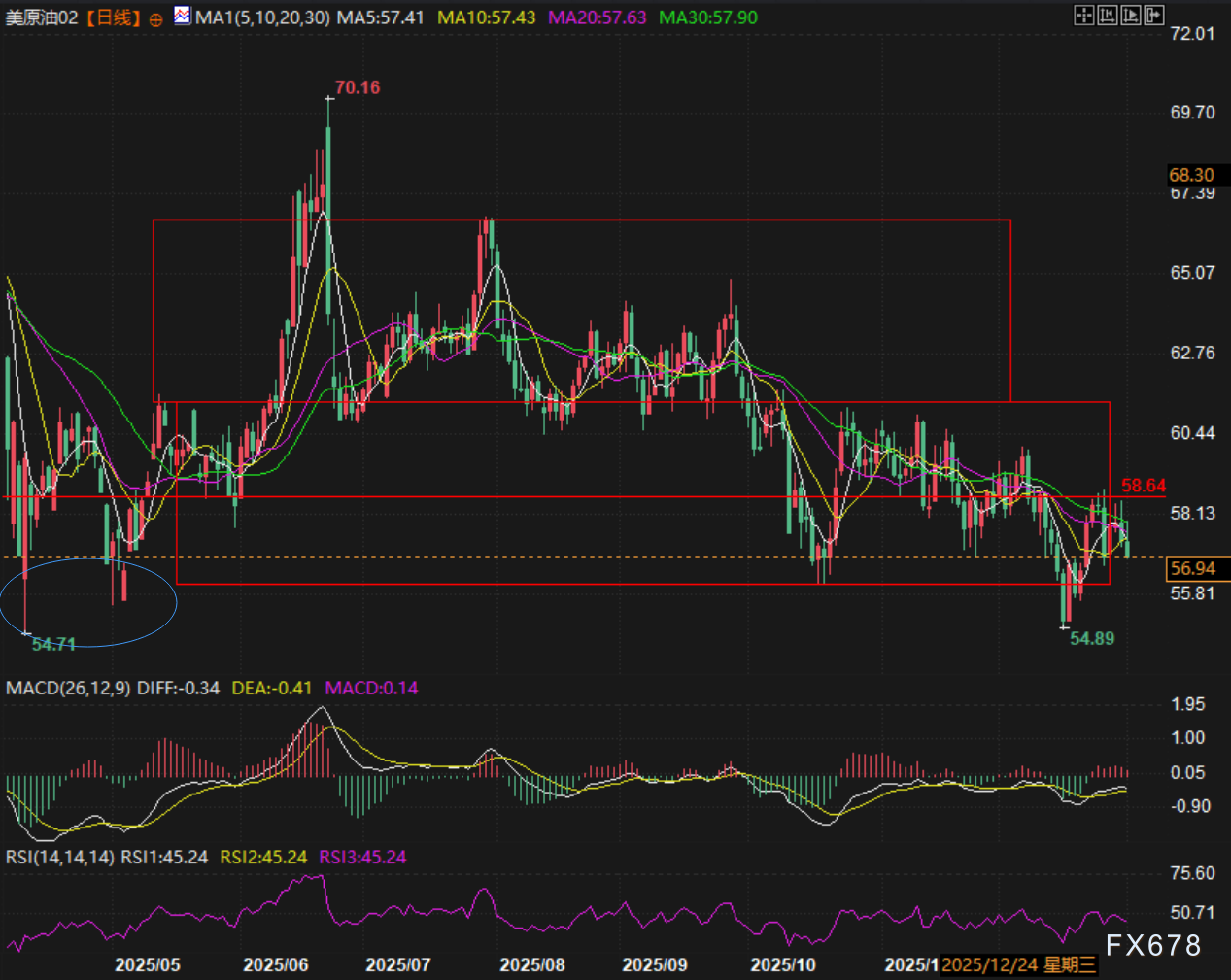 汇通财经APP讯——周五(1月2日)欧洲时段美原油2月期货合约走出冲高回落走势,最高价触及向下拐头的30日线后继续探